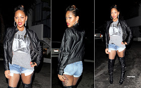 Wednesday April 21 2010. Actress Meagan Good showing off her thigh tattoo in knee high boots and denim hotpants as she arrives for a night at Bar 210 in Beverly Hills.